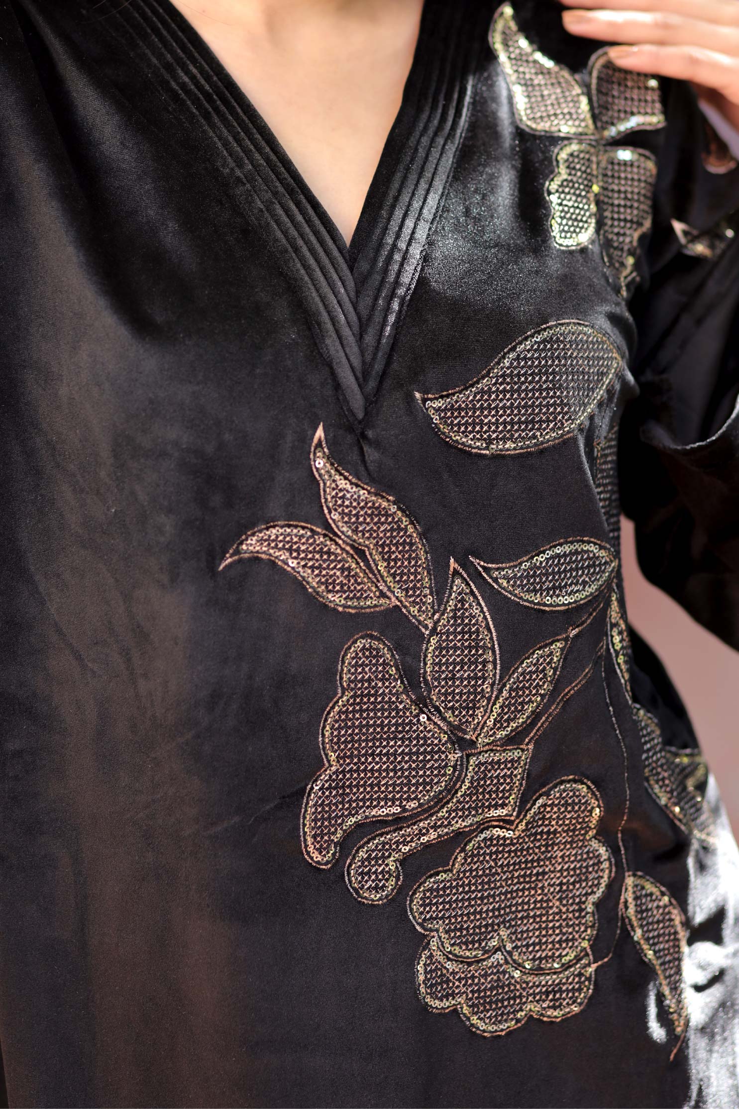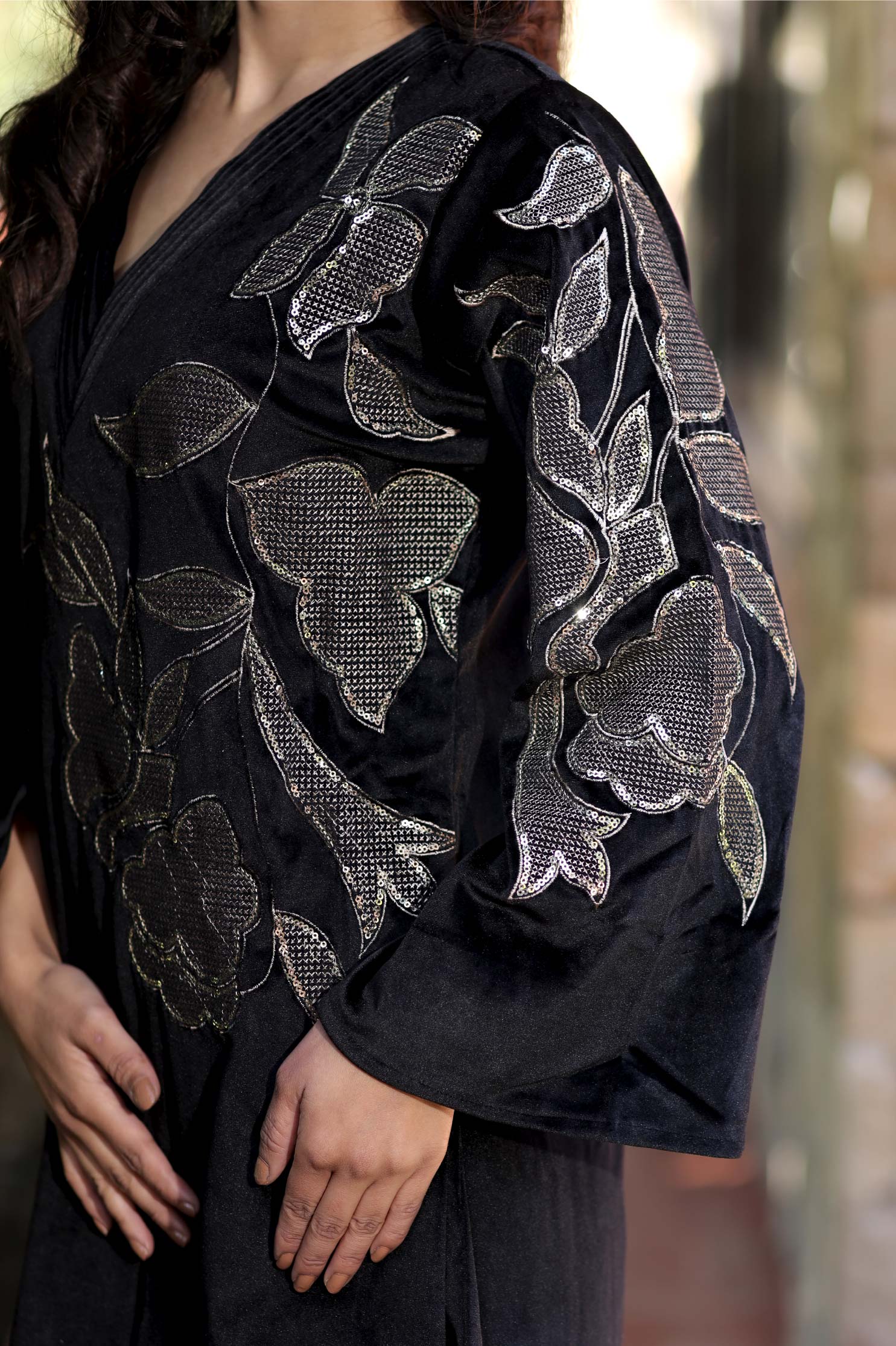 - Care: Dry clean only to maintain velvet texture and embroidery detailing
