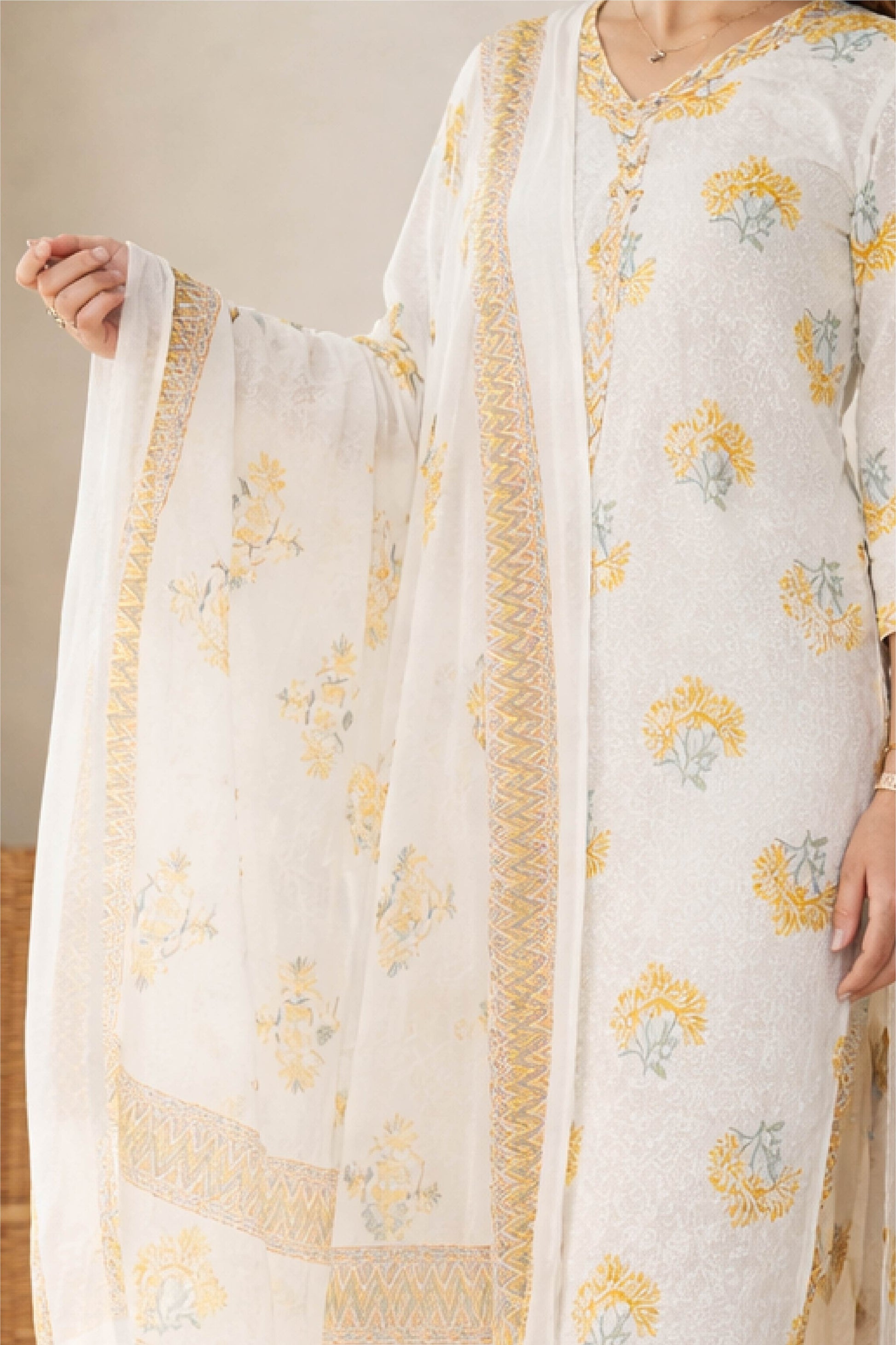 - Fabric: 100% Cotton (Kurta, Pants, and Dupatta)